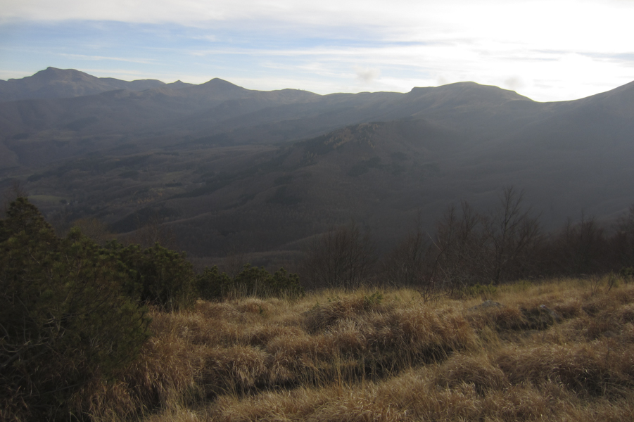 L'estate di san Martino sembra non voler finire...un po' di foschia avvolge le valli del cimone, ma l'atmosfera è bella e affascinante...gli alberi sono già spogli e ci regalano un soffice tappeto di foglie da spazzolare con le nostre ruote.